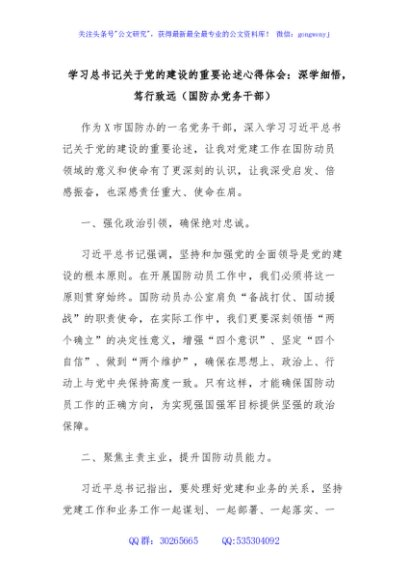 / 学习总书记关于党的建设的重要论述心得体会:深学细悟,笃行致远(国防办党务干部)