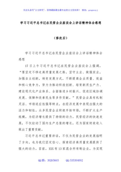 学习习近平总书记在民营企业座谈会上讲话精神体会感想(修改后)