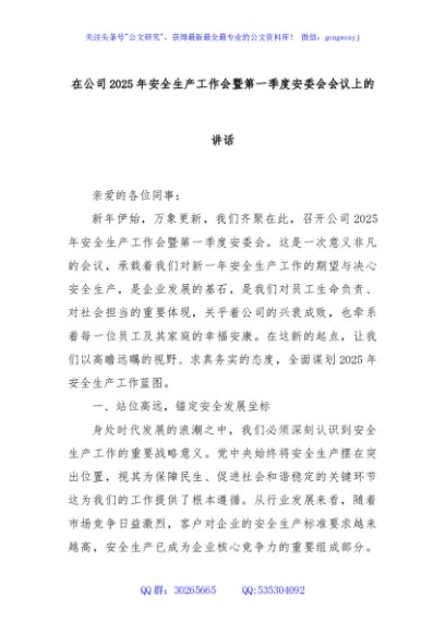 / 在公司2025年安全生产工作会暨第一季度安委会会议上的讲话