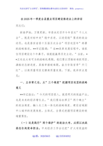 / 在2025年一季度全县重点项目建设推进会上的讲话