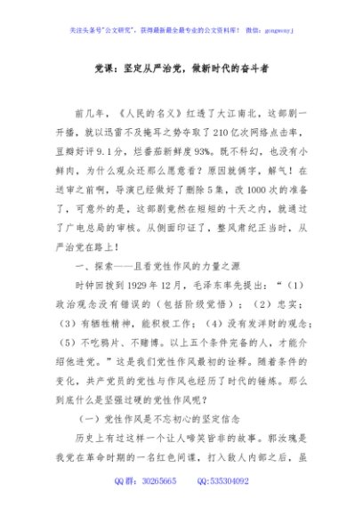 党课:坚定从严治党,做新时代的奋斗者