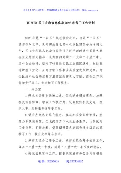 / XX市XX区工业和信息化局2025年部门工作计划