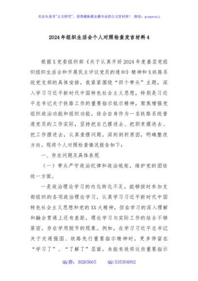 / 2024年组织生活会个人对照检查发言材料4