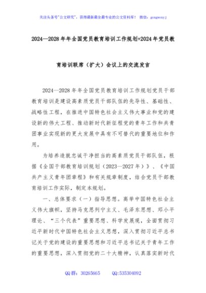 / 2024—2028年年全国党员教育培训工作规划+2024年党员教育培训联席(扩大)会议上的交流发言