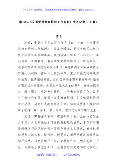 / (15篇)读2024《全国党员教育培训工作规划》党员心得