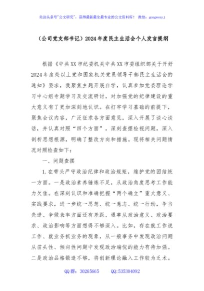 / (公司党支部书记)2024年度民主生活会个人发言提纲