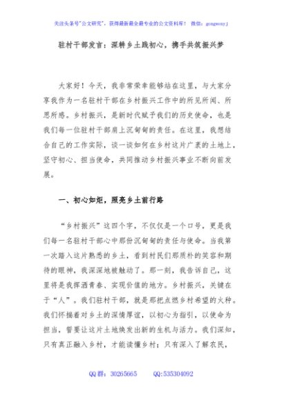 / 驻村干部发言:深耕乡土践初心,携手共筑振兴梦