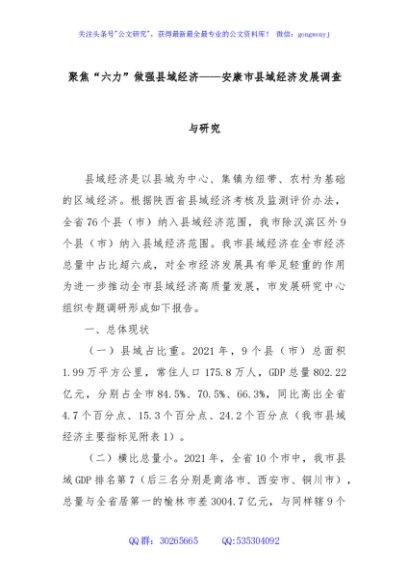 聚焦“六力”做强县域经济——安康市县域经济发展调查与研究