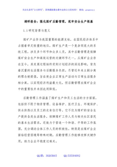 调研报告:强化煤矿后勤管理,筑牢安全生产根基