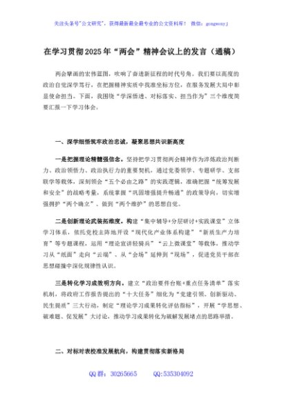/ 在学习贯彻2025年“两会”精神会议上的发言(通稿)
