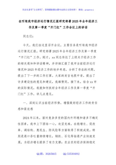 / 在听取我市经济运行情况汇报研究部署2025年全年经济工作及第一季度“开门红”工作会议上的讲话