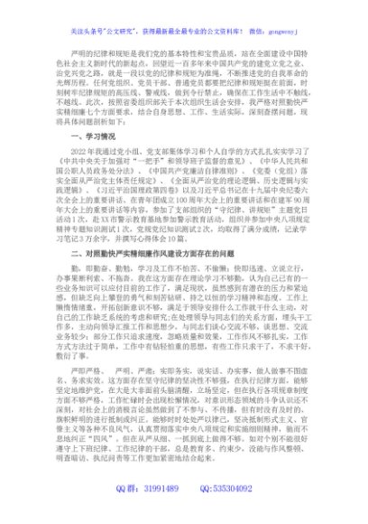 党员干部“严守纪律规矩,加强作风建设”对照检查材料
