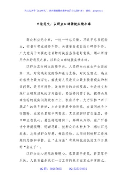 申论范文:以群众口碑铸就实绩丰碑
