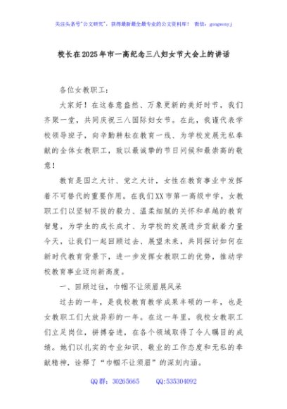 / 校长在2025年市一高纪念三八妇女节大会上的讲话