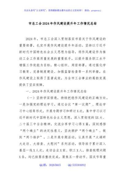 / 市总工会2024年作风建设提升年工作情况总结