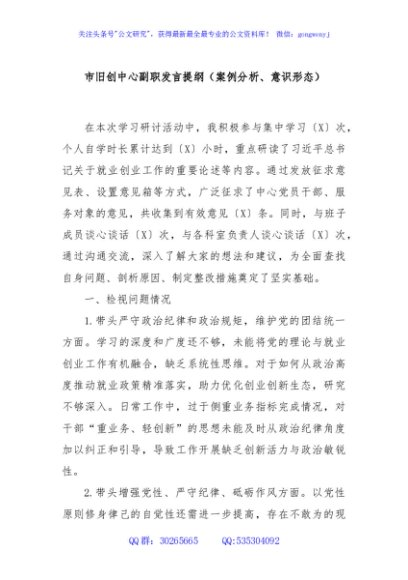 / 市旧创中心副职发言提纲(案例分析、意识形态)
