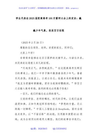 / 学生代表在2025届距离高考100天誓师大会上的发言:巍巍少年气象,孜孜百日征程