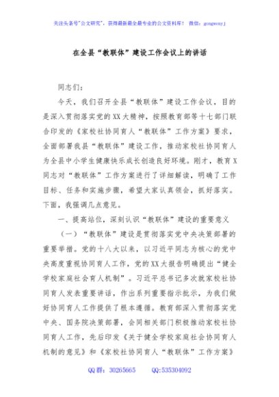 / 在全县“教联体”建设工作会议上的讲话