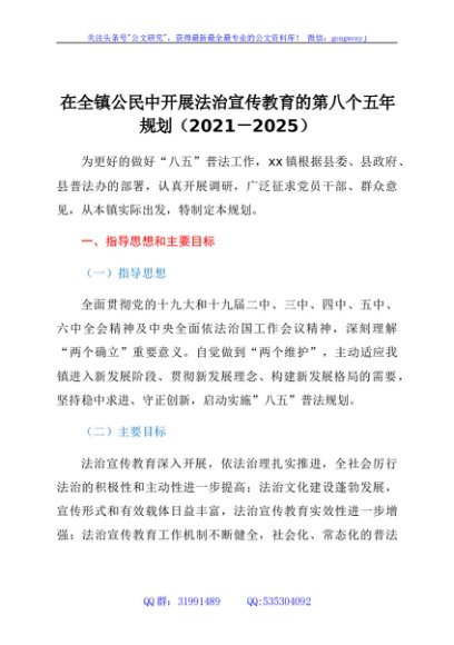 / 在全镇公民中开展法治宣传教育的第八个五年规划(2021-2025)