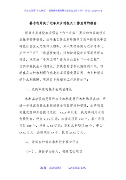 / 县水利局关于近年来乡村振兴工作总结的报告