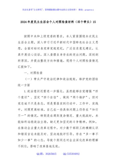 / 2024年度民主生活会个人对照检查材料(四个带头)15