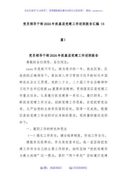 / (6篇)党员领导干部2024年抓基层党建工作述职报告汇编