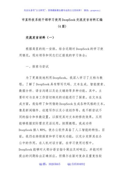 / (4篇)市直科技系统干部学习使用DeepSeek交流发言材料汇编