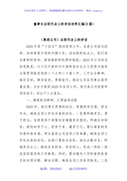 / (3篇)董事长在职代会上的讲话材料汇编