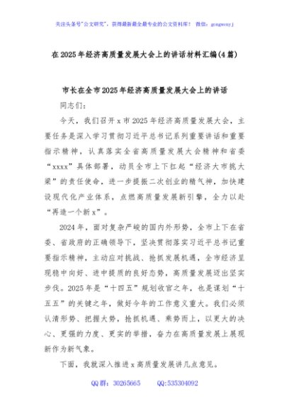 / (4篇)在2025年经济高质量发展大会上的讲话材料汇编