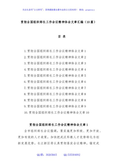 / (10篇)贯彻全国组织部长工作会议精神体会文章汇编