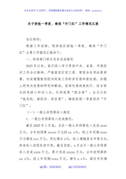 / 关于拼抢一季度、确保“开门红”工作情况汇报