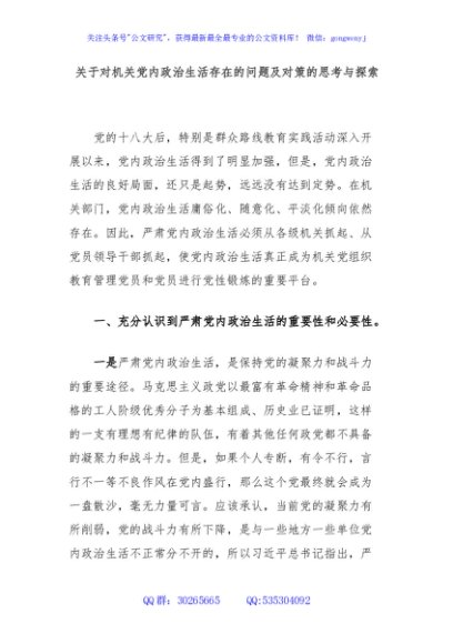 关于对机关党内政治生活存在的问题及对策的思考与探索