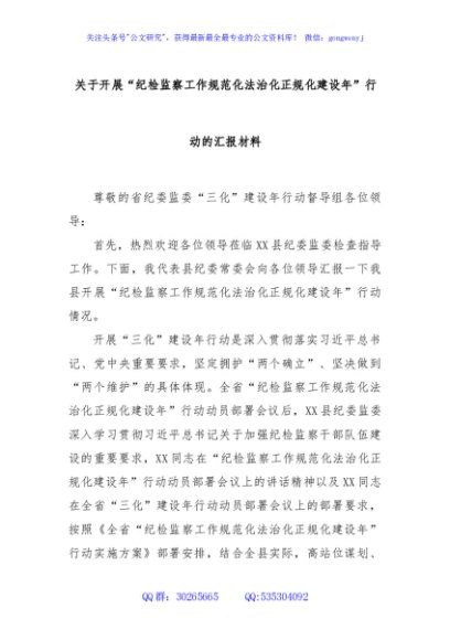 / 关于开展“纪检监察工作规范化法治化正规化建设年”行动的汇报材料