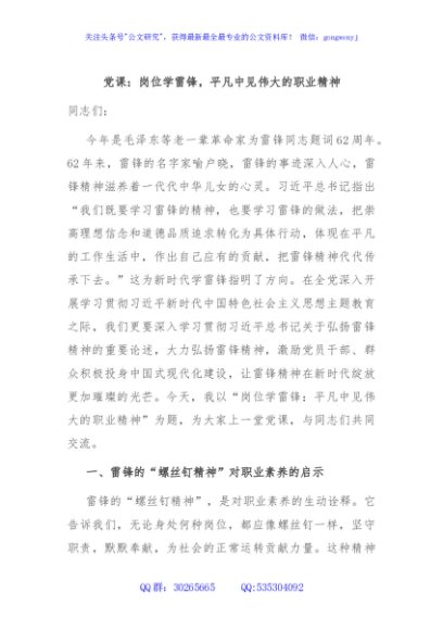 党课:岗位学雷锋,平凡中见伟大的职业精神