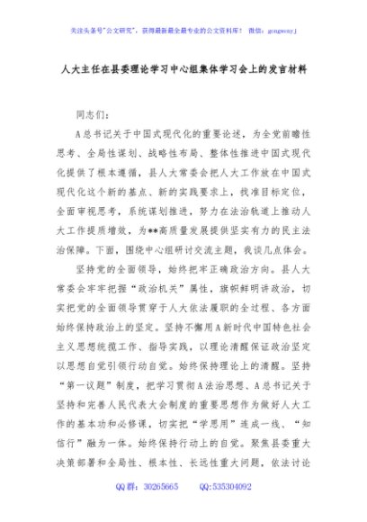 / 人大主任在县委理论学习中心组集体学习会上的发言材料