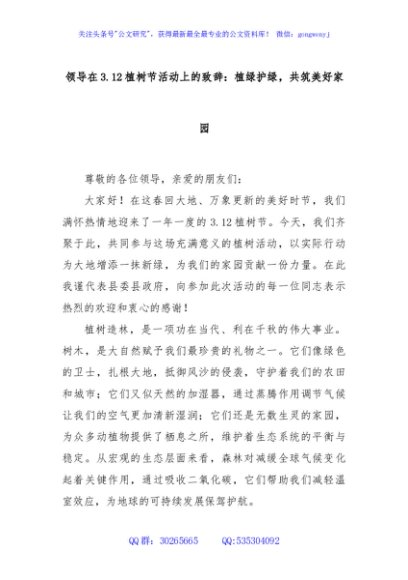 / 领导在3.12植树节活动上的致辞:植绿护绿,共筑美好家园