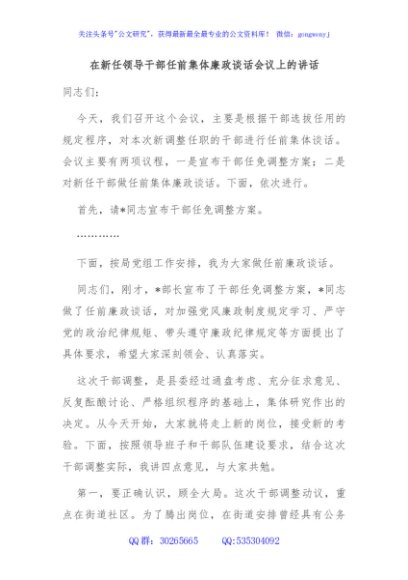 / 在新任领导干部任前集体廉政谈话会议上的讲话