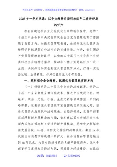 / 2025年一季度党课:以中央精神为指引推动年工作开好局起好步