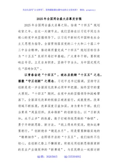 2025 年全国两会盛大启幕发言稿