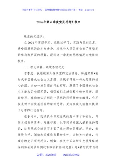 / 2024年第四季度党员思想汇报2