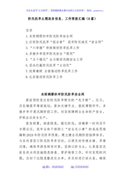/ (8篇)防汛抗旱主题政务信息、工作简报汇编