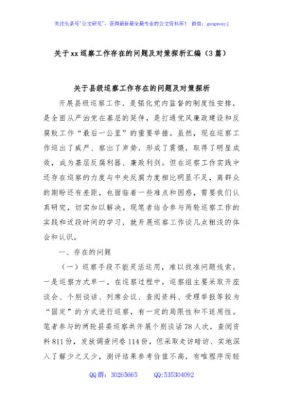 / (3篇)关于xx巡察工作存在的问题及对策探析汇编