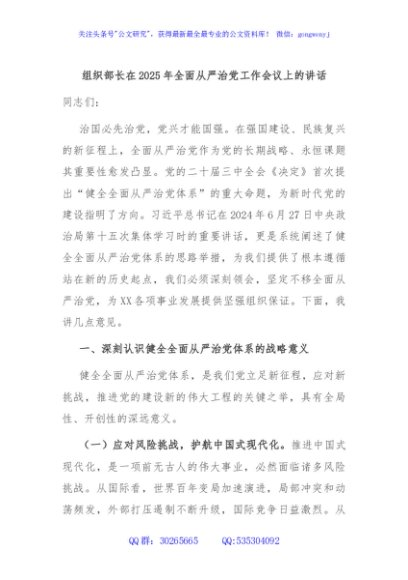 / 组织部长在2025年全面从严治党工作会议上的讲话