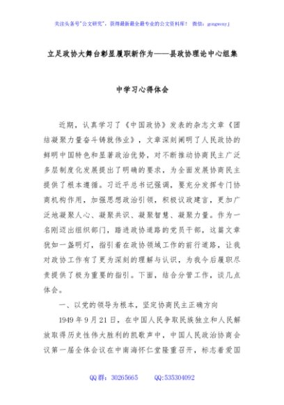 / 立足政协大舞台彰显履职新作为——县政协理论中心组集中学习心得体会