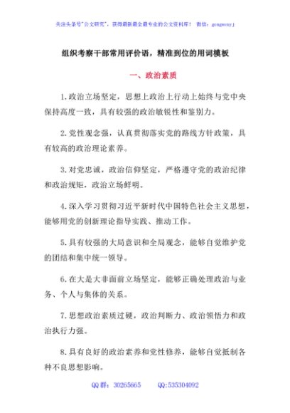 / 组织考察干部常用评价语,精准到位的用词模板