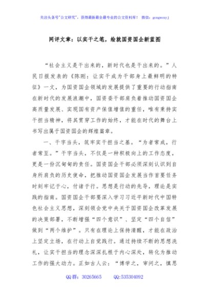 / 网评文章:以实干之笔,绘就国资国企新蓝图