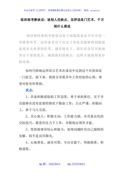 / 组织部考察谈话:谈别人优缺点,怎样说是门艺术,千万别什么都说