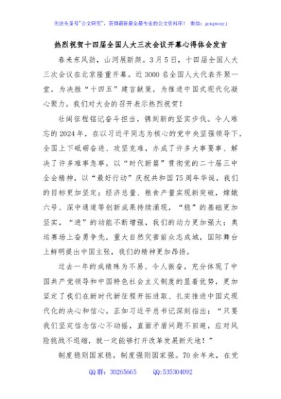 / 热烈祝贺十四届全国人大三次会议开幕心得体会发言