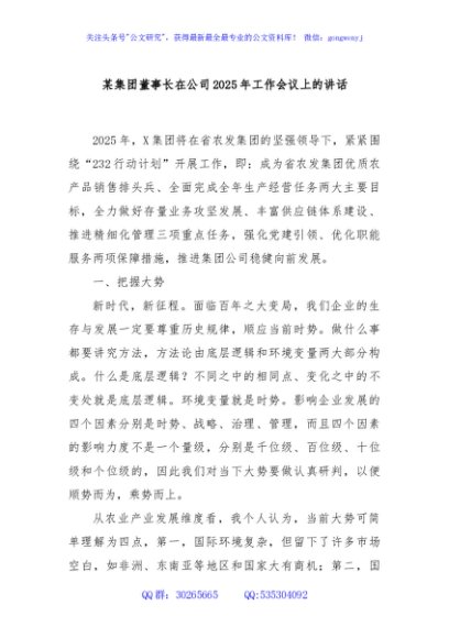 / 某集团董事长在公司2025年工作会议上的讲话