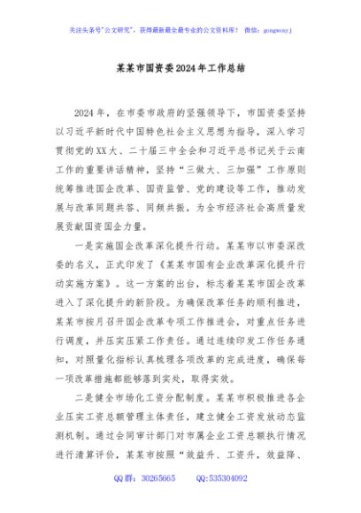 / 某某市国资委2024年工作总结